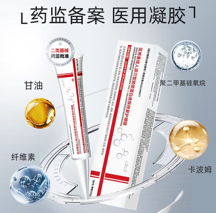 產(chǎn)品核心成分采用醫(yī)用級優(yōu)選配方:重組人源 Ⅲ 型膠原蛋白(純度≥98%,符合《美國藥典(USP)45-NF40》《歐洲藥典(EP 12.0)》《中國藥典(2020 年版)》三重國際標(biāo)準(zhǔn))、藥用級卡波姆、乙二胺四乙酸二鈉(EDTA-2Na,螯合重金屬離子,提升成分穩(wěn)定性與安全性)、三乙醇胺(調(diào)節(jié) pH 值至 5.5-6.5,匹配皮膚生理環(huán)境,減少刺激)。經(jīng)第三方檢測(吉林省醫(yī)療器械檢驗研究院)驗證,該配方在穩(wěn)定性(40℃±2℃、RH75%±5% 條件下儲存三年無分層、無變質(zhì))、安全性(皮膚致敏率 0%)、功效性(膠原促生率 68%)三項核心指標(biāo)上,均達到醫(yī)用修復(fù)凝膠一級標(biāo)準(zhǔn),品質(zhì)有保障。
